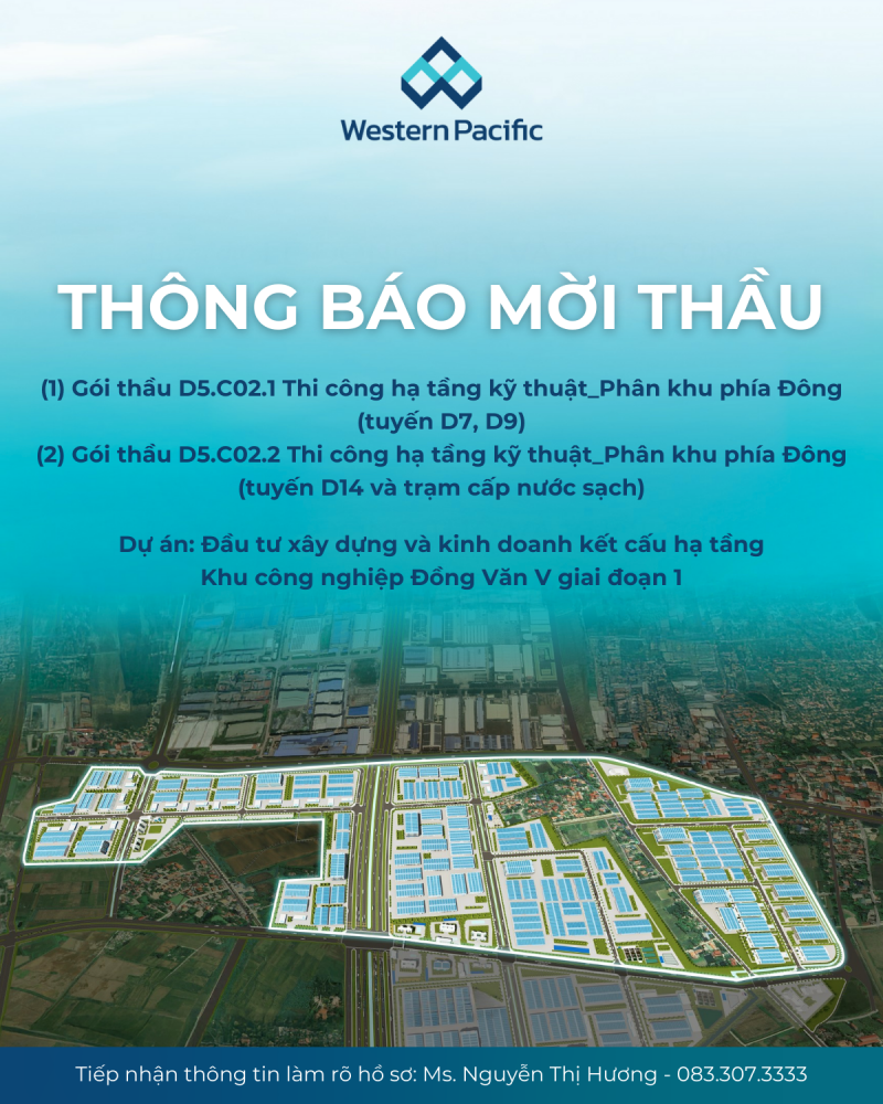 Công ty cổ phần hạ tầng Hà Nam - 1 thành viên của Western Pacific Group thông báo mời thầu