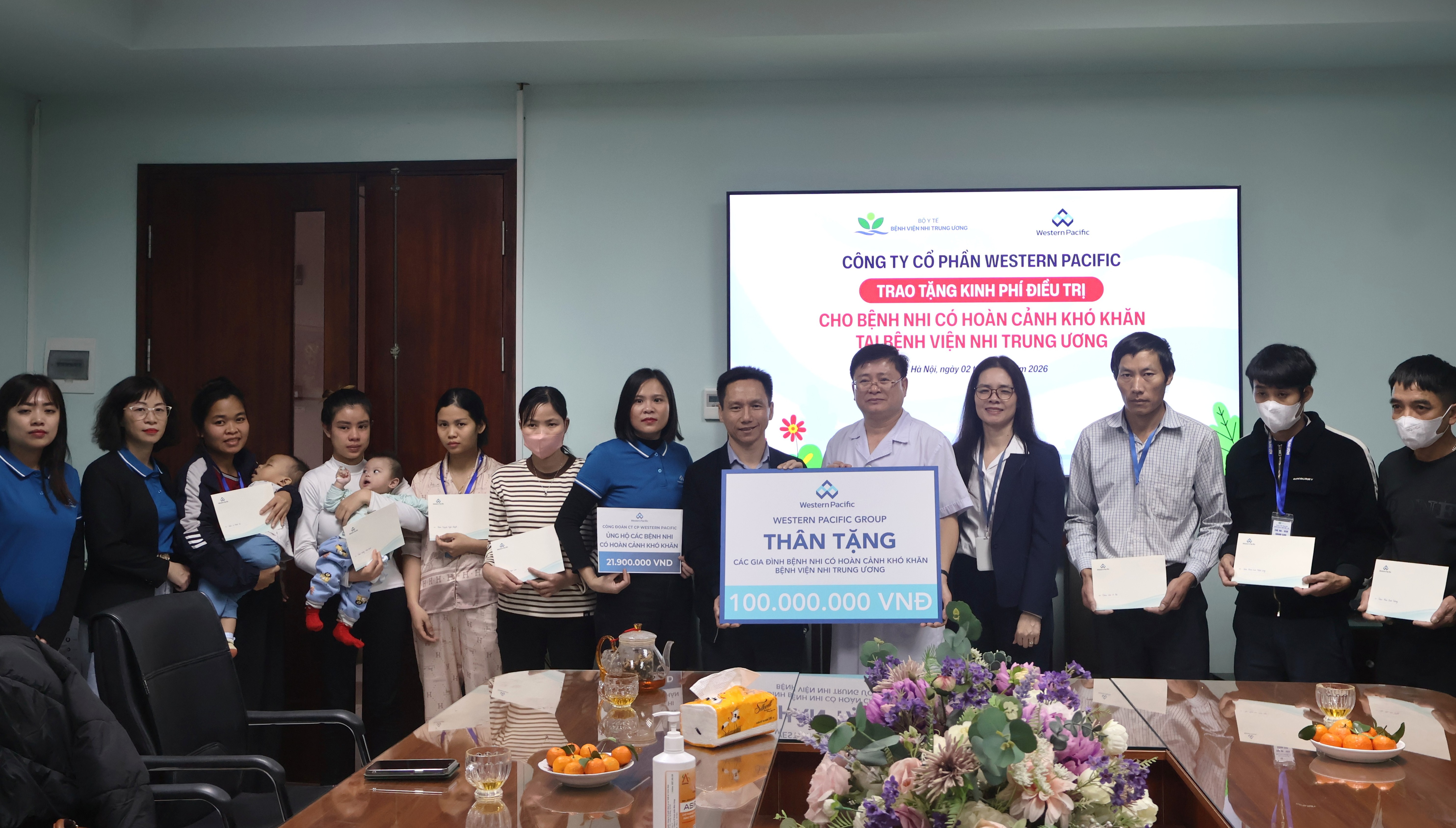 Ngày 02/02, Ban Lãnh đạo cùng cán bộ nhân viên Western Pacific Group đã tổ chức chuyến thăm và trao quà cho các em nhỏ đang điều trị tại Bệnh viện Đa khoa Xanh Pôn và Bệnh viện Nhi Trung ương.